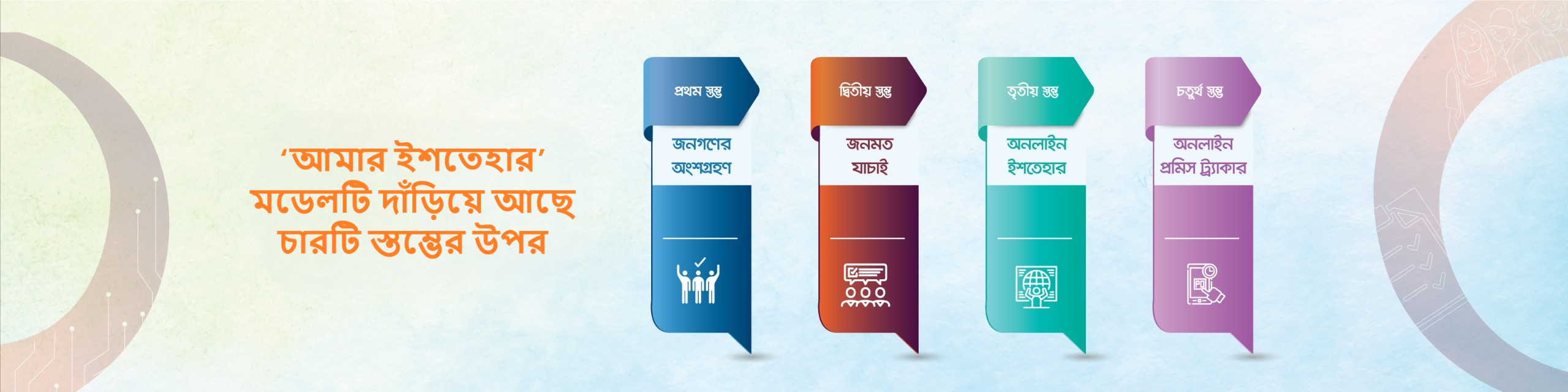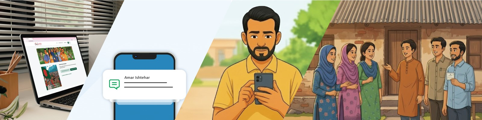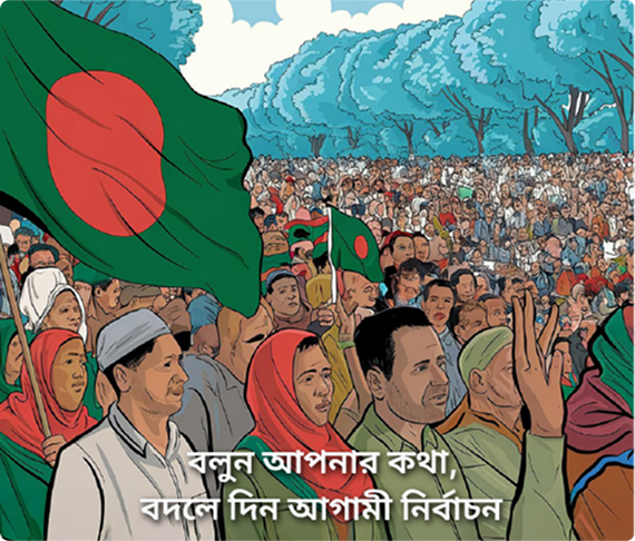 "আমার ইশতেহার" হলো জনগণের সরাসরি অংশগ্রহণমূলক ও প্রযুক্তিনির্ভর নির্বাচনী ইশতেহার প্রণয়নের উদ্যোগ। আগামী জাতীয় সংসদ নির্বাচনকে সামনে রেখে জাতীয় ও আসনভিত্তিক নির্বাচনী ইশতেহার প্রণয়নে আপনার মূল্যবান মতামত দিন—আপনার কন্ঠস্বরই দেশের ভবিষ্যৎ নির্ধারণে সাহায্য করবে।